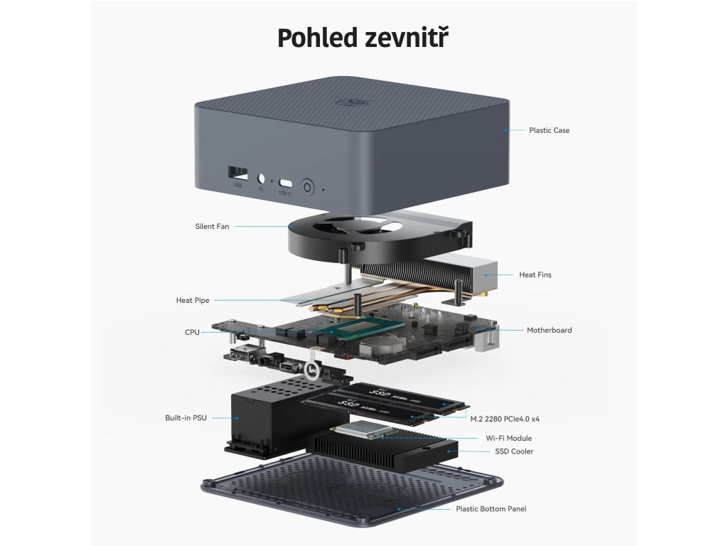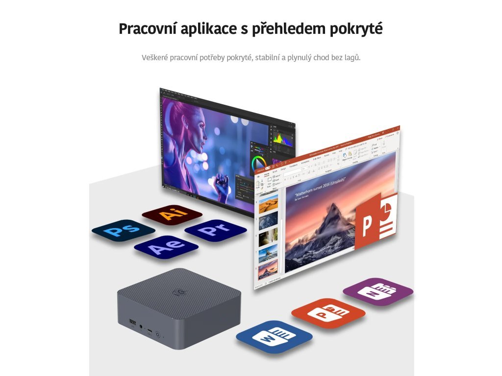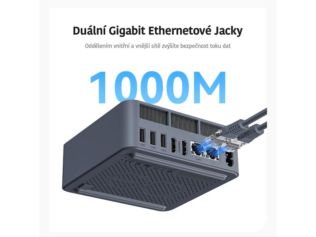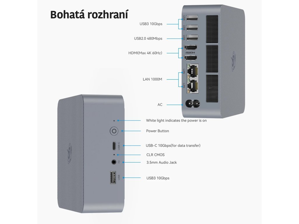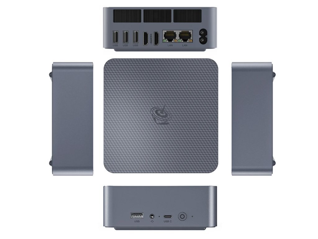 Die Größe dieses Mini-PCs beträgt 126 x 113 x 49 mm bei einem Gewicht von etwa 400 Gramm (je nach Konfiguration). Dieser Mini-PC ist ultradünn und stilvoll. Egal wo er platziert wird, er fügt sich immer nahtlos in das Design ein.