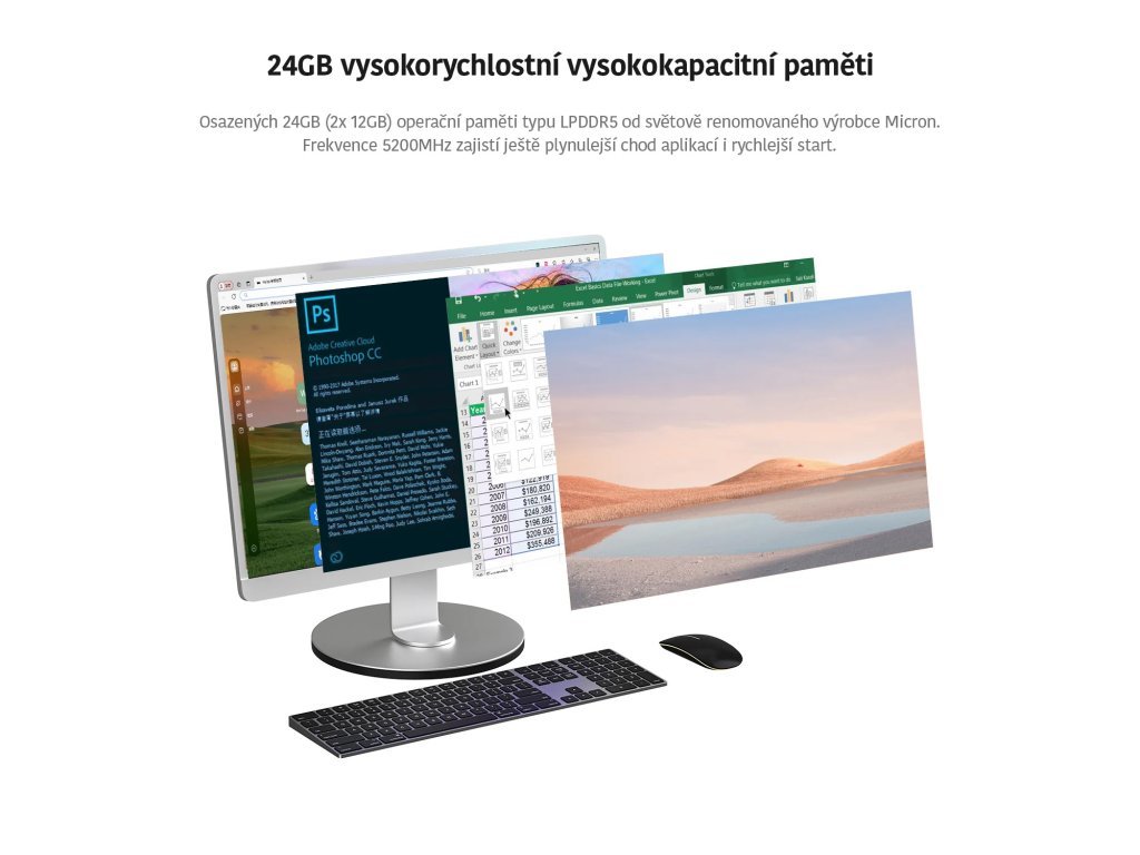 24 GB LPDDR5 RAM mit 5200 MHz Dual Channel vom weltweit renommierten Hersteller Micron. Mehr Leistung, als benötigt wird. Über 85 % Leistungszuwachs im Vergleich zu DDR4. Gewährleistet einen reibungslosen Betrieb der AI-Anwendung Copilot+ von Microsoft.