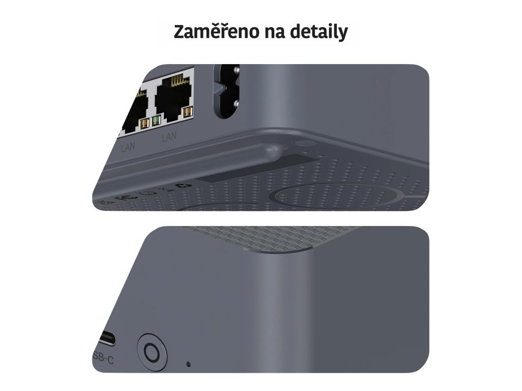 Unterstützt die Standards Wi-Fi 2.4+5.8G Wi-Fi 6 802.11ax und bietet feste Verbindung über zwei RJ45 1 Gbit Ethernet Ports.