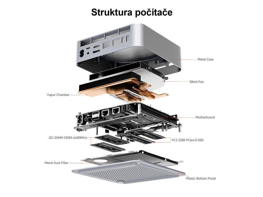 Die Größe dieses Mini-PCs beträgt 158 x 158 x 56 mm bei einem Gewicht von etwa 750 Gramm. Dieser Mini-PC ist kompakt und stilvoll. Egal, wo er platziert wird, er fügt sich immer harmonisch in das Design ein.
