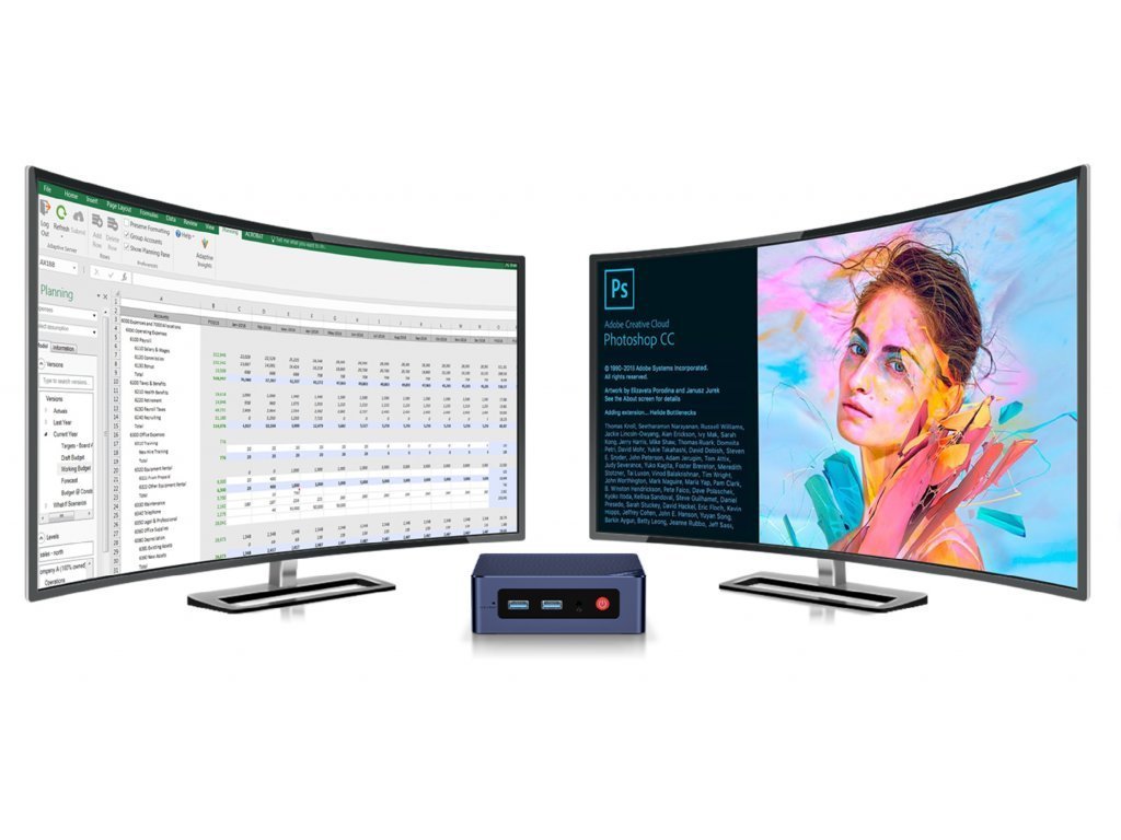Die Abmessungen dieses Minicomputers betragen 115 x 102 x 41 mm bei einem Gewicht von 280 Gramm. Dieser kompakte Minicomputer ist schlank und elegant. Egal, wo Sie ihn aufstellen, er passt immer ins Design.