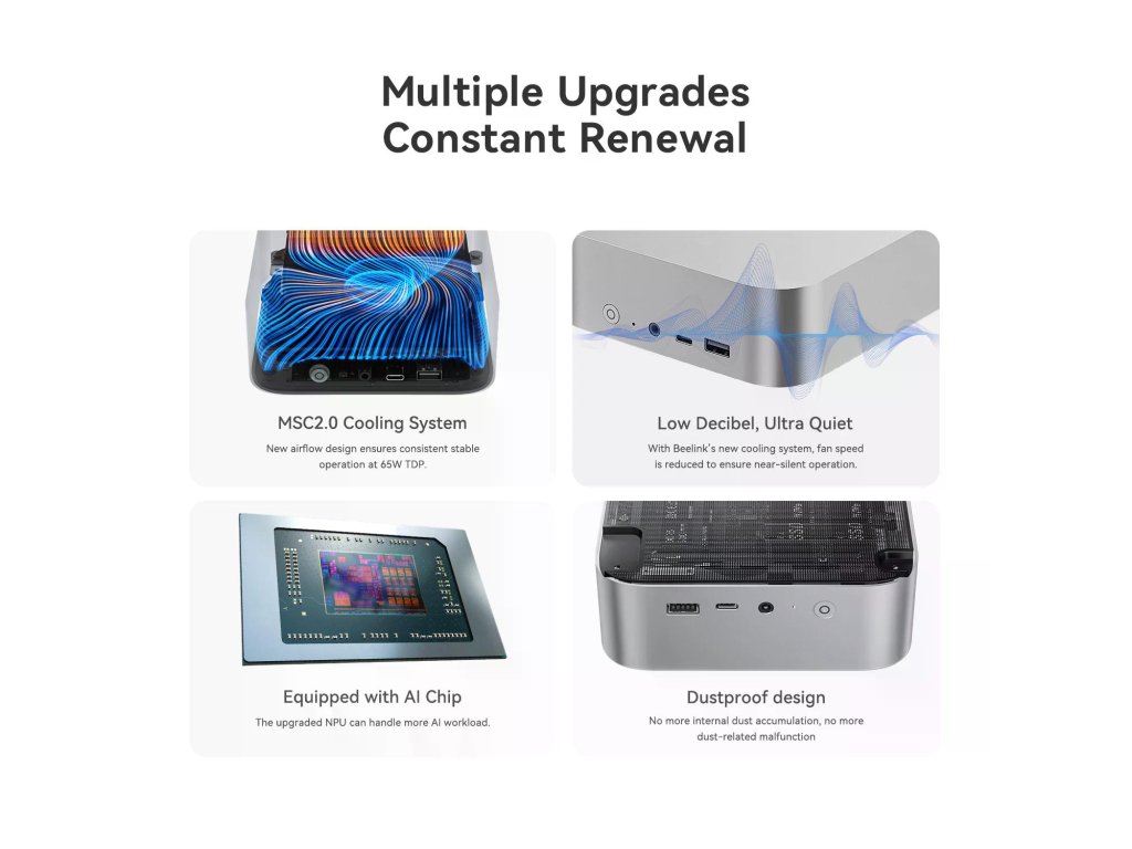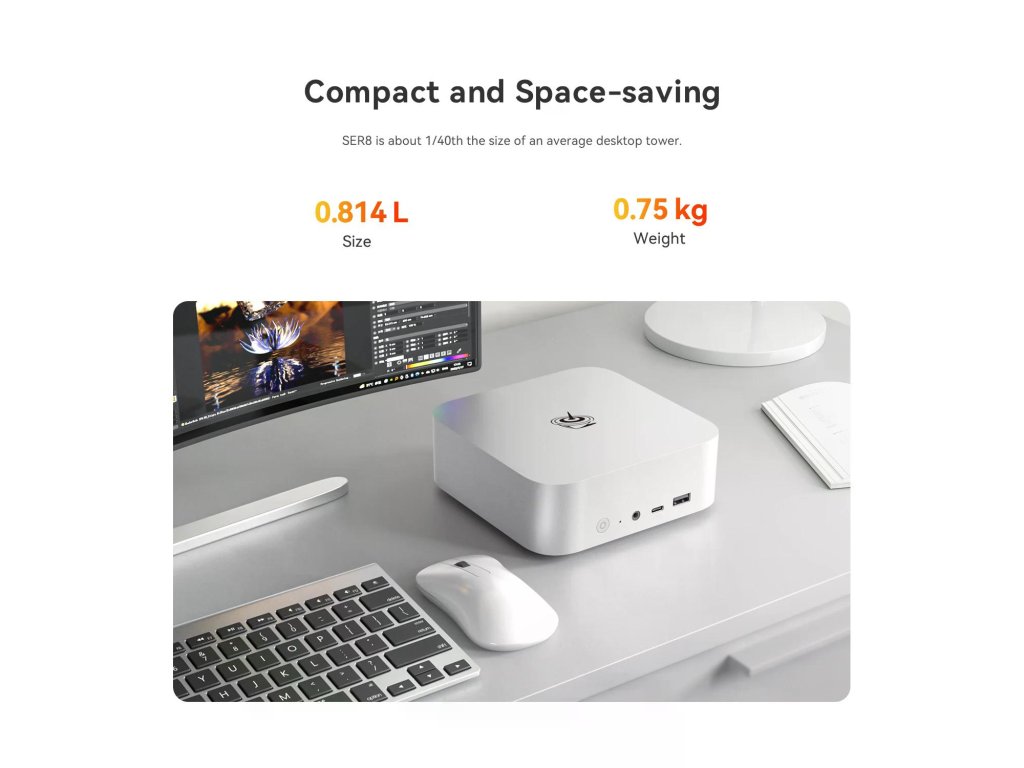 Der Nachfolger der leistungsstärksten AMD SER-Serie mit der neuen Prozessor-Generation, die künstliche Intelligenz direkt auf dem Prozessorchip mit einer Neural Processing Unit unterstützt. Modell SER8 mit 16–32 GB Arbeitsspeicher, 1–5 TB SSD-Speicher, Prozessor AMD Ryzen 7 8845HS. Betriebssystem Windows 11 Pro.